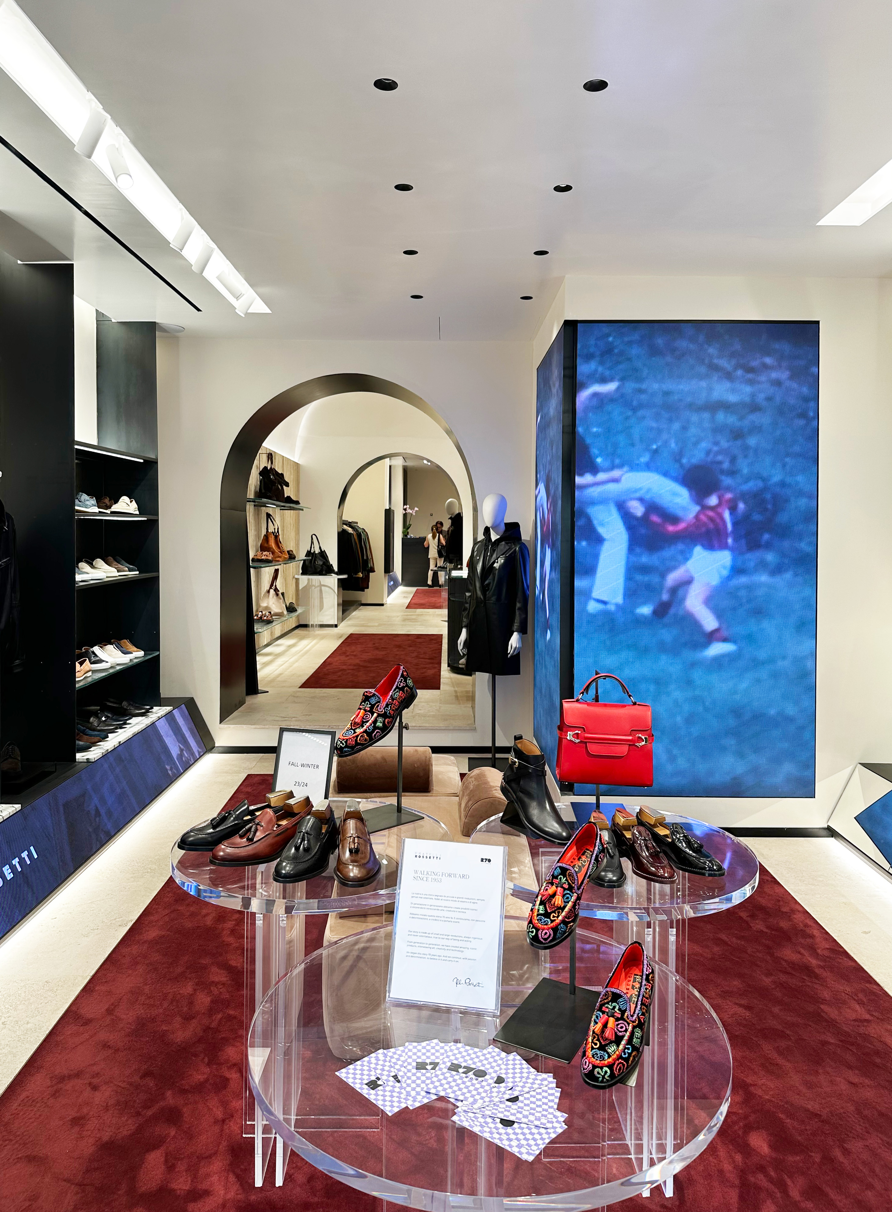 The studio began its collaboration with the brand Fratelli Rossetti in 2020, with the development of a new retail concept. The first store to be completed was the flagship location in the Galleria Vittorio Emanuele II in Milan. Subsequently, the studio delivered further projects in São Paulo, Doha, New York, Rome, as well as at Milan Linate and Milan Malpensa airports, ensuring consistency of the brand identity across diverse international contexts.